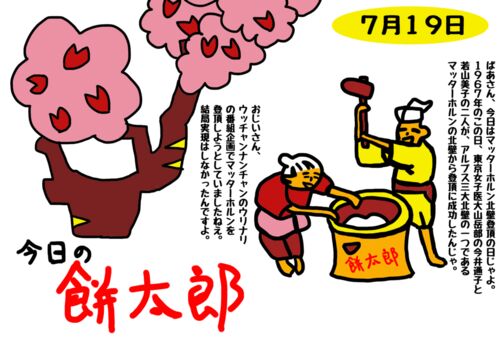 今日は何の日? 7月19日はマッターホルン北壁登頂の日~! 1967年のこの日、東京女子医大山岳部の今井通子と若山美子の二人が、アルプス三大北壁の一つであるマッターホルンの北壁から登頂に成功しました。 女性だけのパーティーでの北壁登攀(とうは…