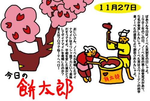 今日は何の日? 11月27日はノーベル賞制定の日 1901年のこの日、ノーベル賞の第1回授賞式があり、5名が受賞しました。 ノーベル賞はスウェーデンの科学者アルフレッド・ノーベルの遺言により創設されました。 現在、授賞式は毎年ノーベルの命日の…